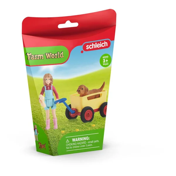 Avec l’excursion en chariot FARM WORLD de Schleich®, Sarah FW et son chiot de labrador Bello vivent de formidables aventures. En chemin, ils passent devant une prairie aux fleurs colorées et un champ de céréales avant d’arriver dans le verger au jardin de la ferme. Ils y marquent une pause, profitent de l’air frais et écoutent les gazouillis des oiseaux. Le lot complète idéalement la Cabane aventure dans les arbres FW 42408.