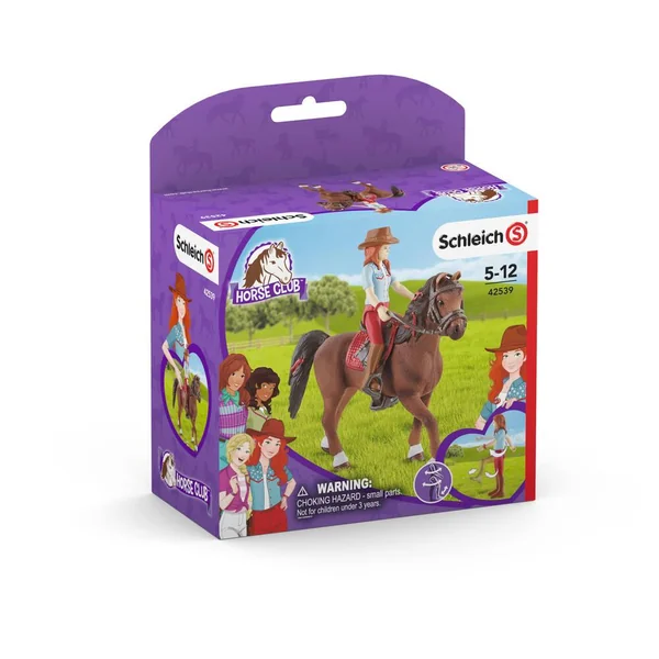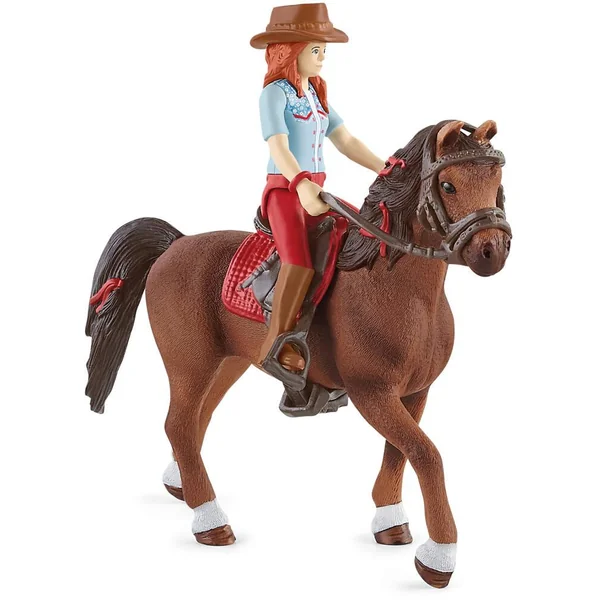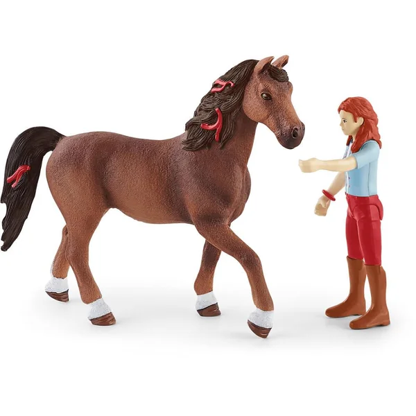 Contient 1 cheval (hauteur : 9,5 cm), 1 figurine articulée de 8 cm (cheveux, corps et jambes interchangeables) et des accessoires.