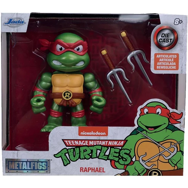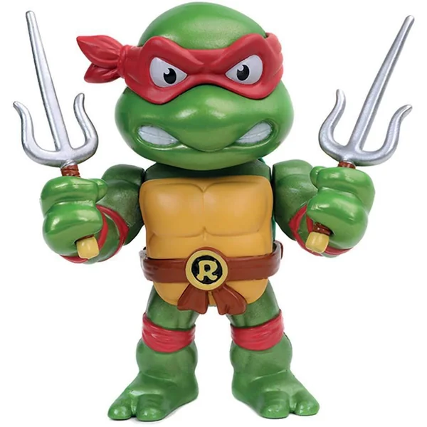 Figurine en métal 10cm représentant Raphaël des Tortues Ninja. Figurine accessoirisée et articulée.
