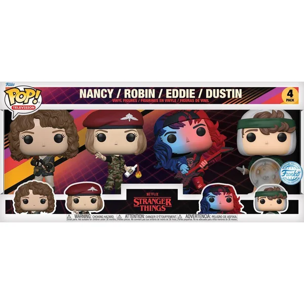 Plongez dans l’univers de Stranger Things avec ce pack de 4 figurines POP! de Funko, représentant Nancy Wheeler, Robin Buckley, Eddie Munson et Dustin Henderson. Chacun de ces personnages emblématiques de la saison 4 apporte sa propre touche à l’histoire, enrichissant l’intrigue palpitante de la série. Un must-have pour les fans qui souhaitent compléter leur collection avec ces héros et héros en devenir !