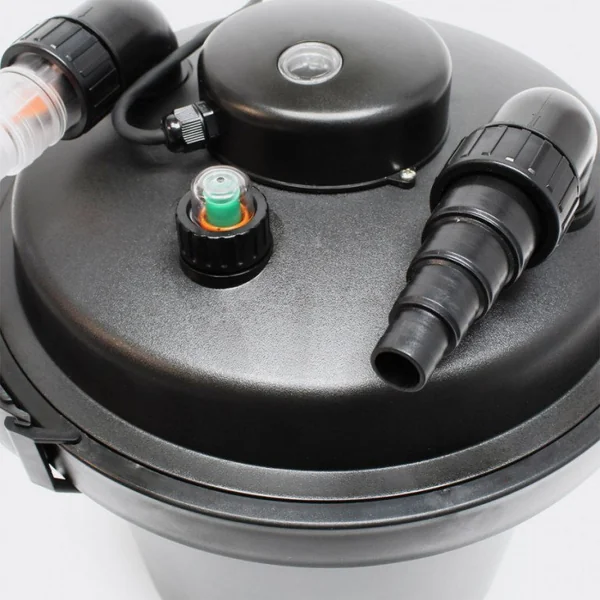 Contra les filtres biologiques, les filtres sous pression sont complètement fermés et vous pouvez laisser le filtre allumé en continu avec plus de tranquillité, car il n’y a pas de risque de débordement. Il permet également un placement au niveau sous la surface de l’eau. La performance de filtration est également très remarquable, car par rapport aux filtres biologiques mentionnés, ils ont une performance de filtration équivalente, voire meilleure, avec un volume nettement plus petit.