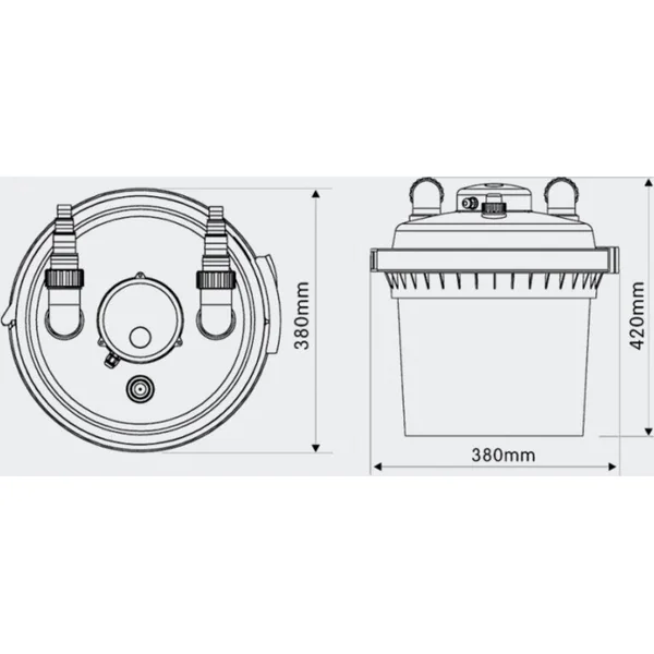 - Le filtre crée de l’eau claire pour les étangs sans poissons jusqu’à 8 000 l ou avec des poissons jusqu’à 4 000 l.