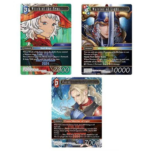 Le Wordl Champion Decks 2024 est une fidèle reproduction des deux decks créés par Hara Y., Champion du Monde FFTCG 2024. Il offre aux joueurs un excellent aperçu de l’art de la construction de decks ainsi qu’un produit clé en main pour jouer à FFTCG au plus haut niveau !