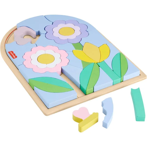 Puzzle en bois pour enfants à motif fleuri amusant avec des blocs à empiler de formes différentes – Contient 37 blocs de formes différentes et un plateau avec des lignes dessinées pour aider les enfants à trier les formes et à les placer aux emplacements correspondants – Fabriqué en bois issu de forêts certifiées Forest Stewardship Council® et gérées de façon responsable – Favorise la motricité fine, la capacité à résoudre des problèmes et l’imagination