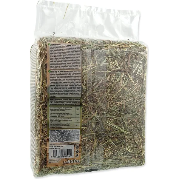 Composition : Foin de prairies de montagne 96 %, fleurs séchées de mauve 4 %.