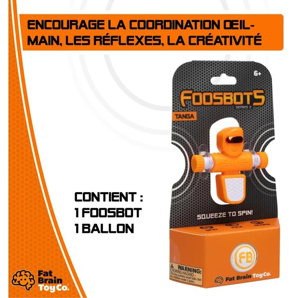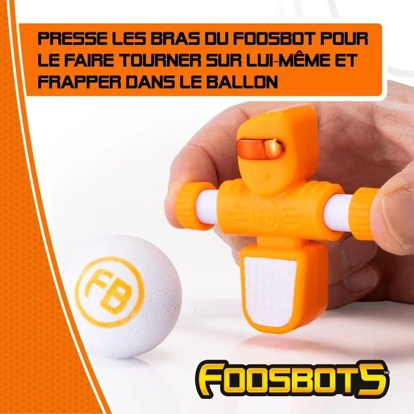 Lorsque tu presses les bras de ton Foosbots, il tourne sur lui-même et frappe la balle RAPIDEMENT. Arriveras-tu à marquer des buts avant ton adversaire ? Repousse les limites de ton talent. Prêt à virevolter avec Tanga ? Collectionne tous les Foosbots et deviens le champion ultime des Foosbots !