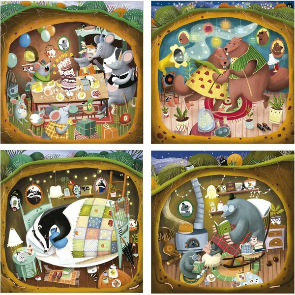 Chaque boîte de puzzles progressifs contient 4 puzzles composés d’un nombre variable de pièces (de 12 r 25) pour que les enfants passent progressivement d’un niveau de difficulté au suivant au fur et r mesure qu’ils grandissent et gagnent en habileté.