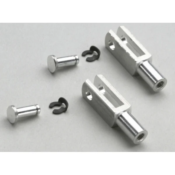 Fourchette en aluminium HD avec filetage M4 longueur 24mm, largeur 6mm, goupille en aluminium 3mm avec sécurités. 2 pièces par emballage.