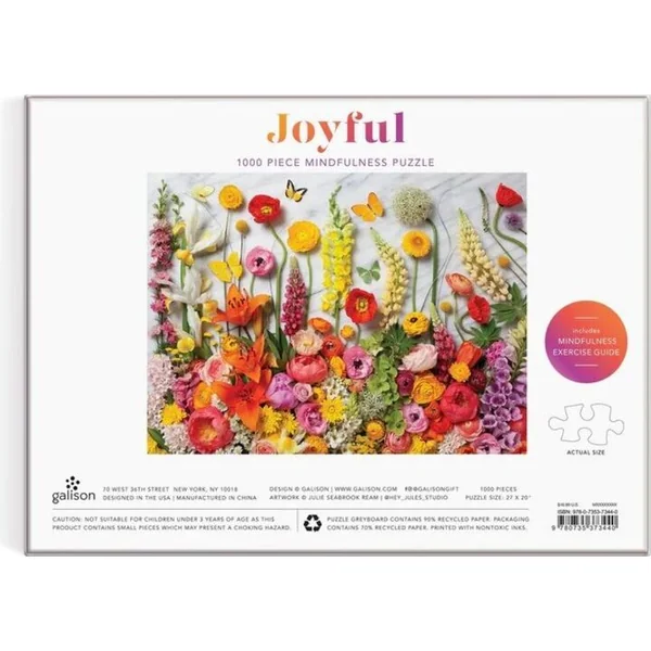 Le puzzle contient de magnifiques fleurs colorées de l’artiste Julie Seabrook Ream, qui favorisent la pleine conscience et l’équilibre. Trouvez votre paix intérieure dans les pièces ! Le puzzle est emballé dans une boîte solide, réutilisable et facile à ranger. Idéal comme cadeau. L’image est de Julie Seabrook Ream. Les puzzles sont fabriqués avec une part significative de papier recyclé et offrent une impression de haute qualité avec des couleurs non toxiques. Ils sont dotés d’une finition mate qui garantit une reproduction fidèle des détails et des couleurs dans toutes les circonstances.