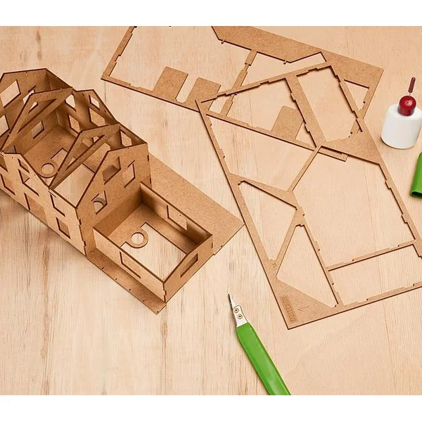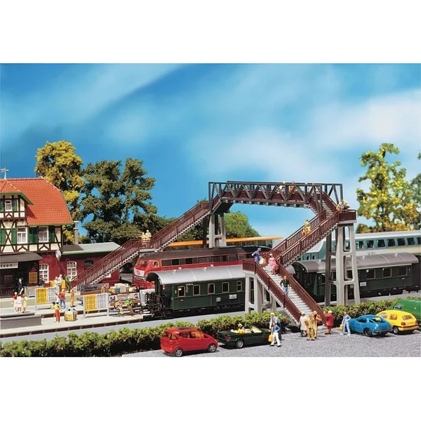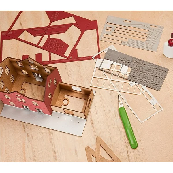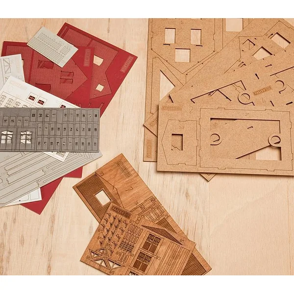 Gare de KlingenbergGare standard typique à briques recuites, socle maçonné et volets. Mixte de matériel en plastique, bois et pièces spéciales cartonnées de couleurs. Le hangar à marchandises accolé est revêtu de pièces laquées en vrai bois. Escaliers, portes et rampes de chargement sont également en bois naturel. Caractéristique : Degré de difficulté