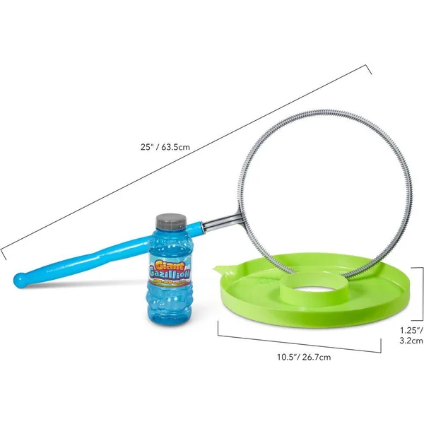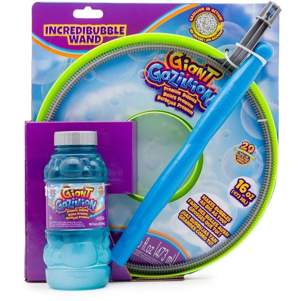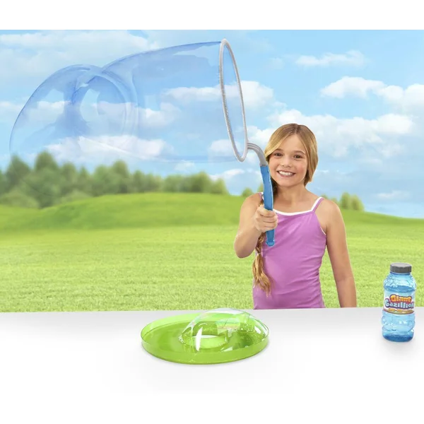 Une véritable baguette magique qui permet de faire des bulles aussi grosses que soi ! Très simple d’utilisation, il suffit d’immerger la baguette dans la solution savonneuse, puis de la déplacer en l’air pour créer des bulles géantes : des formes créatives, impressionnantes pour les petits et les plus grands ! Pack comprenant : une baguette grand format de 55 cm, un plateau et une solution de 473 ml spéciale bulles géantes.