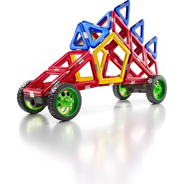 Le set de 36 pièces comprend, en plus des formes magnétiques colorées, des roues et des châssis, permettant aux enfants de construire des moyens de transport selon des instructions ou selon leur propre imagination.