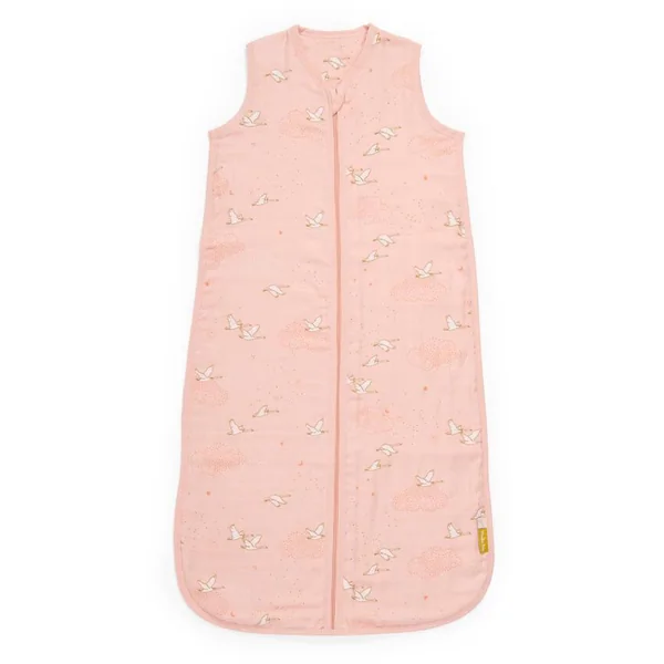 Gigoteuse d’été 6-24 mois, zippée sur le devant. En lange rose imprimé cygnes, 100% coton bio, elle est légère et respirante. Matière idéale pour les températures estivales (TOG 1), le lange gaufre et s’adoucit à chaque lavage. Tissu certifié OEKO-TEX®.