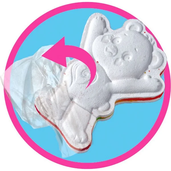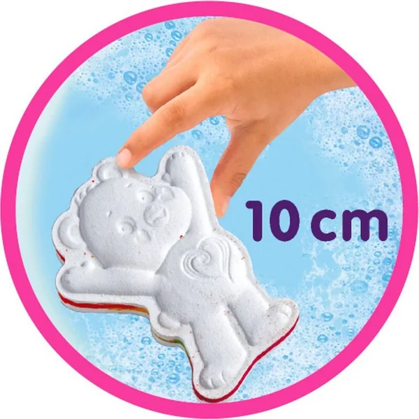 Insérez délicatement Glibbi Boom dans l’eau du bain et regardez-le libérer un effet arc-en-ciel multicolore !