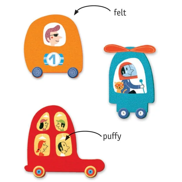 De la feutrine autocollante et des gommettes en volume, pour composer et coller, coller !