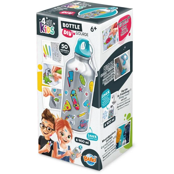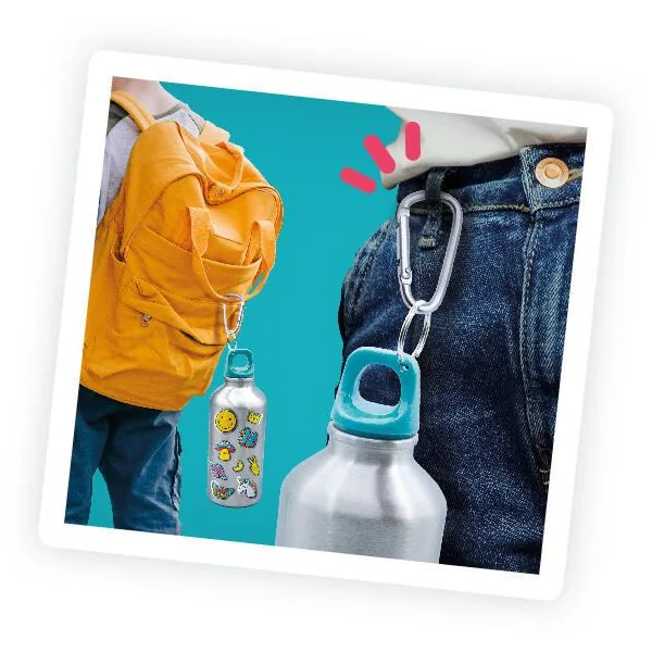 Décore ta gourde pour la rendre unique et emporte-la à l’école ou en balade ! Choisis les stickers, customise-les avec les 4 tubes de peinture 3D puis colle-les sur ta gourde ! Contient: une gourde de 400ml, un bouchon qui se visse, un mousqueton pour accrocher la gourde, 2 planches de stickers, 4 tubes de peinture 3D.