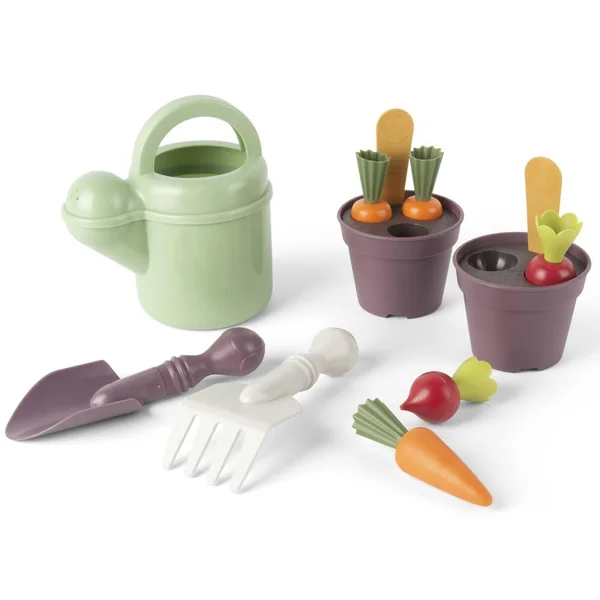 Ensemble contenant : une pelle, un râteau, un arrosoir, un pot de fleurs, des bâtons de plantation, une boîte de rangement et une feuille étiquettes. Un véritable ensemble de plantation et de jeu en un, où les enfants peuvent développer leur main verte et faire germer et pousser des plantes : à la fois des plantes de jeu et des vraies. La pelle sert à creuser la terre, l’arrosoir à arroser les graines fraîchement plantées et les bâtons de plantation à vous rappeler ce que vous avez semé et où. L’ensemble a une grande valeur ludique car il peut être utilisé pour faire pousser des plantes, comme boîte de rangement ou comme ensemble de jeu. L’ensemble est livré avec une feuille d’étiquettes sur laquelle l’enfant peut dessiner ou écrire. Cet ensemble Green Garden soutient le jeu, l’apprentissage et l’exploration en plein air. L’univers Green Garden encourage les enfants à jouer et à s’impliquer dans les tâches quotidiennes, comme entretenir un potager. Ensemble, vous pourrez découvrir comment les plantes et les couleurs du jardin changent tout au long de l’année. Passe au lave-vaisselle.