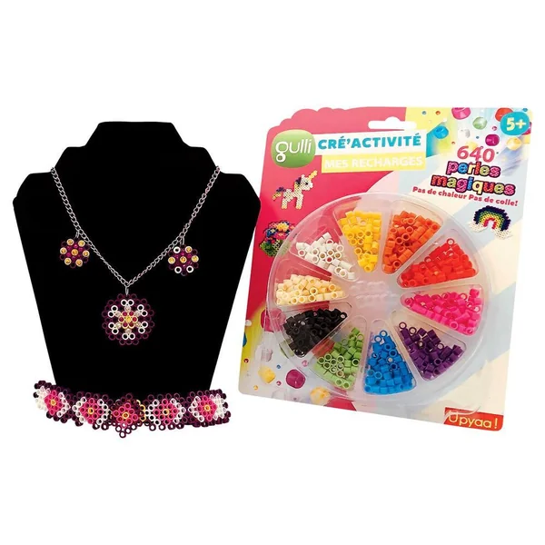 Ces perles ne nécessitent aucun repassage, et sont donc aussi plus sûres à utiliser qu’à fabriquer. Il vous suffit de placer les perles sur le support, de commencer à mettre les perles en suivant le modèle et les couleurs, puis de vaporiser un tout petit peu d’eau sur les perles, à l’aide de notre vaporisateur d’eau. Les perles vont se durcir et se coller entre elle. La création est prête. C’est facile à faire, tellement plus sûr et amusant. Comprend une plaque , 400 perles, des cartes à motifs, un flacon pulvérisateur et des instructions.