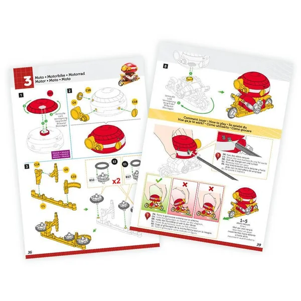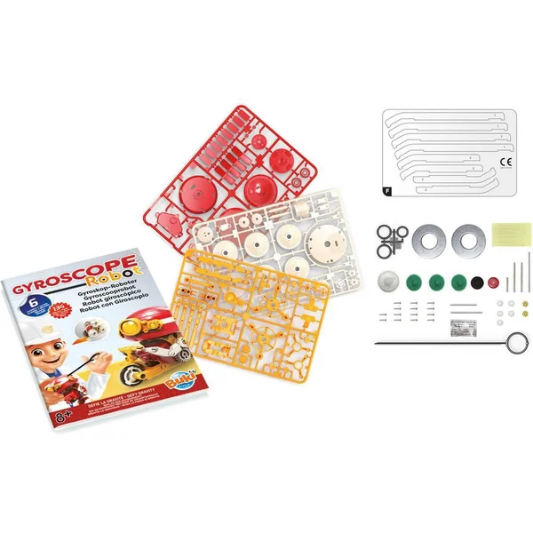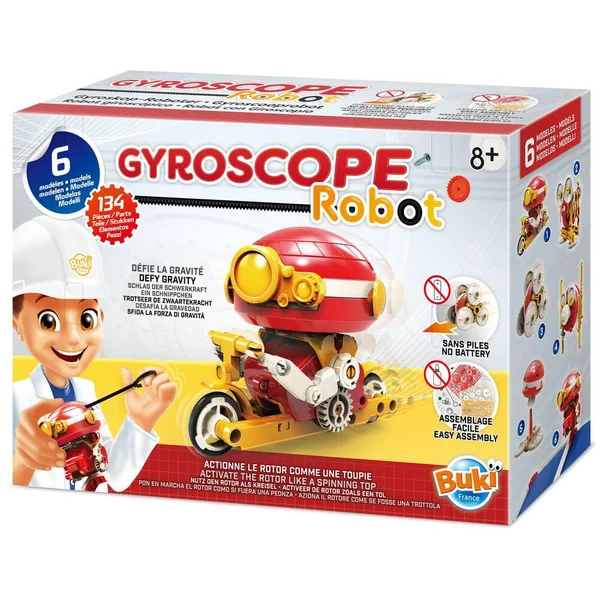 Assemble les pièces pour construire un des 6 modèles dont toupie, buggy, moto, montagne russe. Fonctionne avec un gyroscope : une fois enclenché, il va équilibrer les modèles et les faire avancer et bouger Notice illustrée en couleurs avec schéma de montage détaillés.