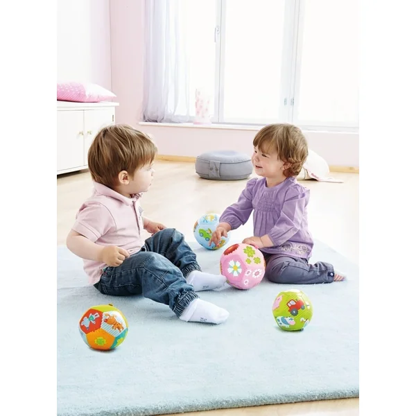 Ballon en textile doux pour les tout-petits avec le motif Ferme et de belles illustrations.