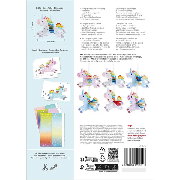Licorne – kit créatif pour les petits créateurs offre aux enfants un projet magique, où ils créeront 6 licornes volantes.