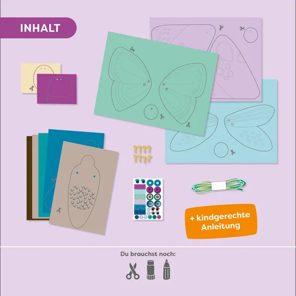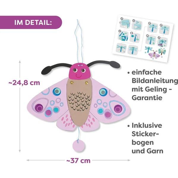 Des papillons volants – un kit créatif pour les petits créateurs offre aux enfants un projet amusant, où ils peuvent assembler 3 papillons mobiles avec fonction de marionnette.