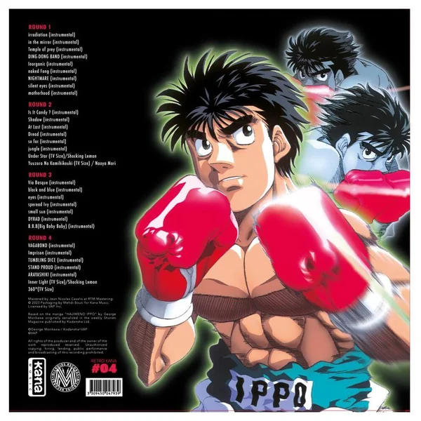 Publié en 1989 dans le « Weekly Shônen Magazine », « Hajime no Ippo » de George Morikawa est devenu au fil des années un manga culte de sport, et reste à ce jour une des plus longues séries-fleuve, toujours en cours de parution, comptant plus de 130 tomes. C’est tout naturellement qu’une version animée voit le jour en 2000, produite par Madhouse, sous le nom de « Hajime no Ippo : The Fighting! » de 76 épisodes (couvrant les trente premiers volumes de la série). Celle-ci narre les débuts et l’ascension d’un lycéen, Ippo Makunouchi, dans le monde de la boxe professionnelle. Retrouvez dès à présent une sélections des meilleures musiques de l’anime aux accents rocks et jazz avec comme destination finale : Le ring ! Trois compositeurs ont œuvré pour cette sélection: Tsuneo IMAHORI (TRIGUN et GUNGRAVE), Hideki TANIUCHI (en collaboration avec Yoshihisa HIRANO sur DEATH NOTE) et Naoya MORI.