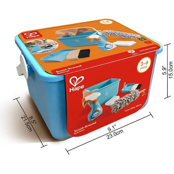 Avec ce superbe ensemble, le nettoyage devient un grand plaisir ! Avec un seau, un flacon de spray nettoyant, une pelle et une brosse à balayer, tout ce dont les plus petits ont besoin en tant qu’aides travailleuses pour le nettoyage est là.