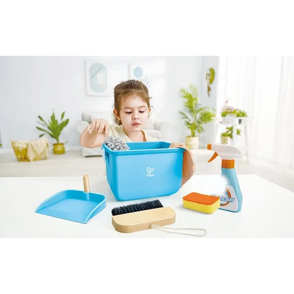 L’ensemble de nettoyage comprend un seau, un pulvérisateur, un chiffon de nettoyage, une pelle, une brosse, une éponge et un plumeau. C’est un jouet éducatif idéal qui favorise le développement de la motricité fine et améliore les compétences linguistiques et sociales.