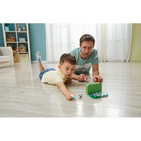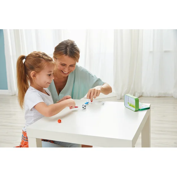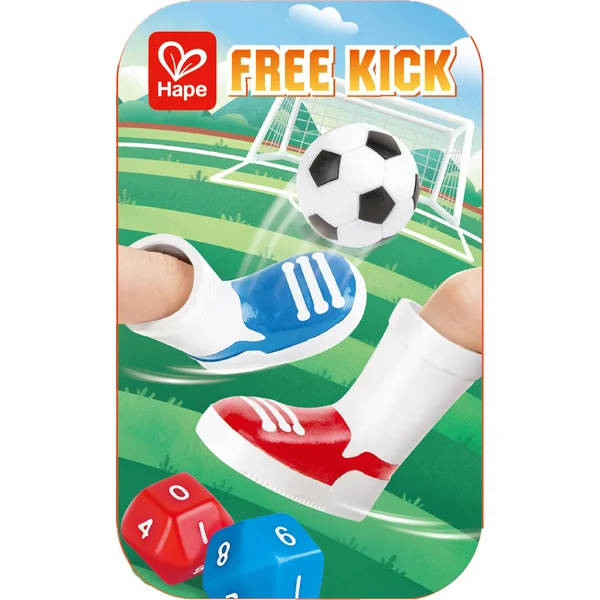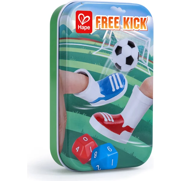 - Essayez 10 tirs, puis échangez vos places et voyez si vous pouvez faire mieux. Contient : deux chaussures pour les doigts, deux dés de score, un but en métal et un ballon de football.