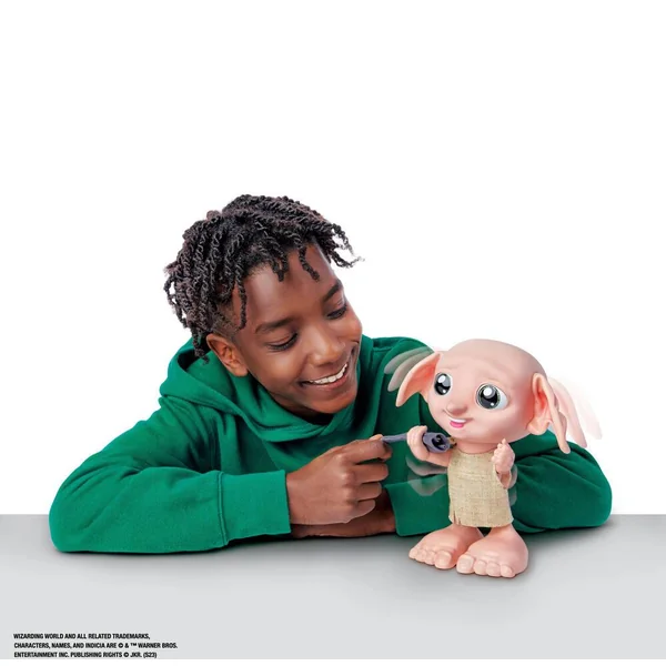 Une figurine interactive et attachante de Dobby, le fidèle elfe de maison au service de la famille Malefoy. Dobby a besoin d’affection, il réagit quand on le câline ou lorsqu’il tient sa chaussette. Ses yeux, sa tête, ses bras et ses oreilles bougent. Plus de 35 sons et réactions. Produit bilingue français et anglais. Fonctionne avec 4 piles LR03 fournies.