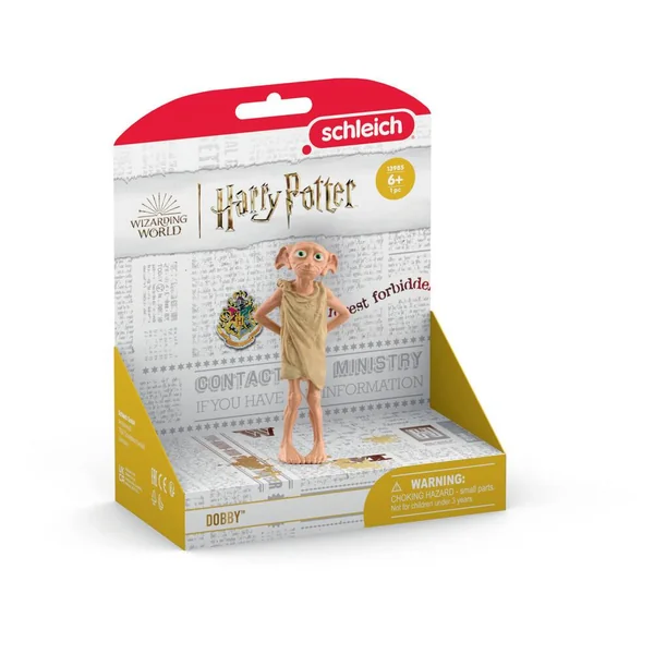 Dobby™ l’elfe de maison est vêtu d’une simple taie d’oreiller, et cache ses mains derrière son dos. Avec ses grandes oreilles, son nez pointu et ses grands yeux verts, il a l’air très gentil.