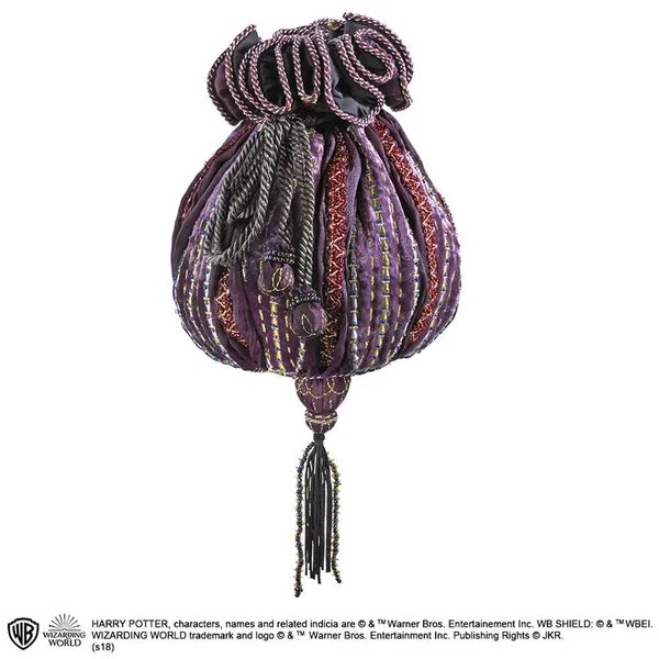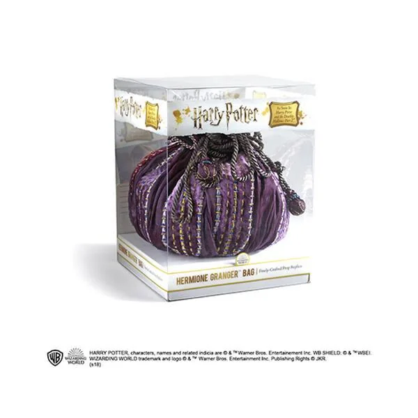Authentique réplique du sac d’Hermione vu dans Harry Potter et les Reliques de Mort, 2e partie. Hermione porte pour la premie fois ce sac lors du mariage de Billy Weasley et de Fleur Delacour. Muni dun cordon de serrage, il mesure 20 x 20 cm environ.