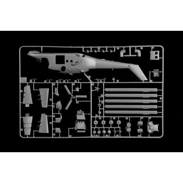 Maquette plastique de l’hélicoptère d’attaque russe Mil-24, livrée en kit à monter et à peindre. L’ensemble de cette maquette vous sera fournie avec toutes les pièces ainsi que les décalcomanies, la peinture et la colle seront à acheter séparément.