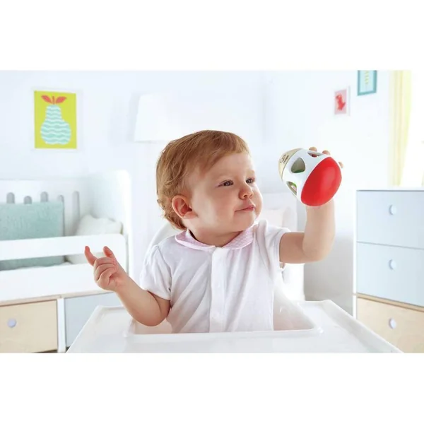 Faites rouler cet astucieux hochet loin de vous et il revient directement en roulant – un peu comme un boomerang. Facile à attraper par des petites mains, il comporte une clochette au son agréable.