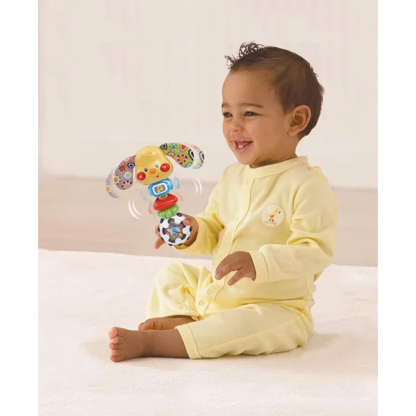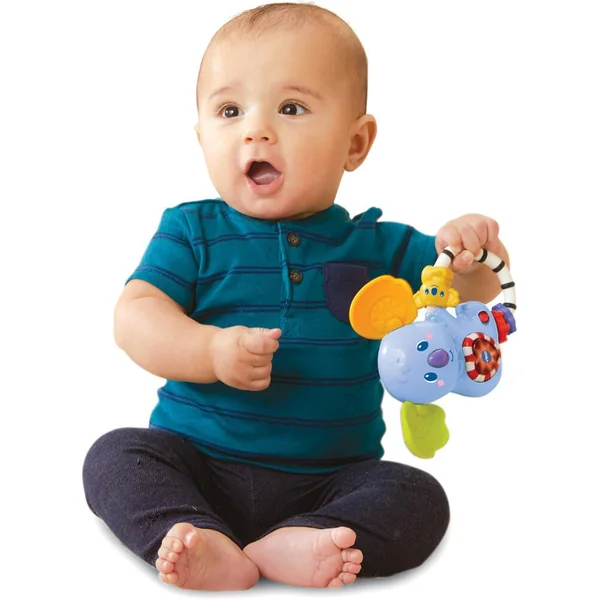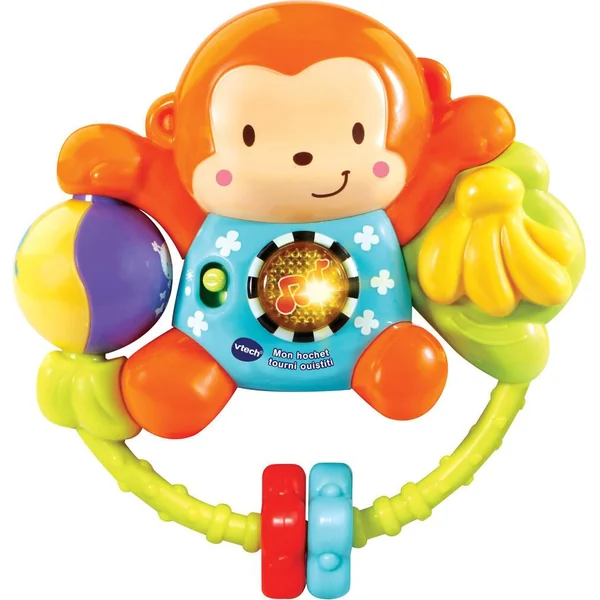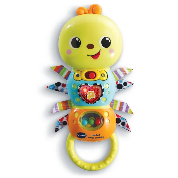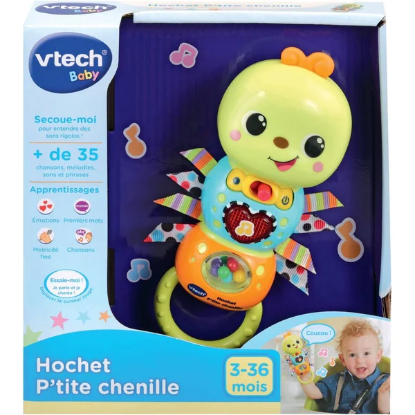 Grâce au détecteur de mouvement, Bébé déclenche des sons et des phrases amusantes lorsqu’il secoue son hochet. Le bouton cœur lumineux permet de déclencher des phrases, des chansons et des mélodies pour amuser Bébé. Il développe sa motricité fine avec les nombreux éléments à manipuler et les différentes textures. Plus de 35 phrases, chansons, mélodies et sons amusants.