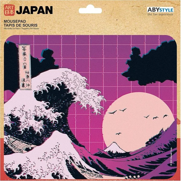 Cette version inspirée du genre musical et mouvement artistique Vaporwave représente La Grande Vague d’Hokusai et c’est parfait sur ce tapis de souris flexible par ABYstyle.