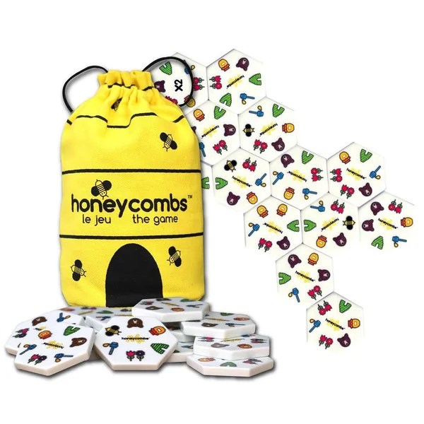 Dans ce joli sac, 52 tuiles hexagonales permettent de créer une grande ruche ! Elles sont fabriquées dans une résine synthétique très douce et agréable à manipuler. Chaque tuile est unique et comporte 6 symboles différents. Essaie de faire plein de connexions ! L’abeille « joker » pourra t’aider à marquer plus de points. Il y a 3 façons de jouer, plus ou moins rapide ou compétitive. De 1 à 8 joueurs. Durée de la partie : 20 minutes.