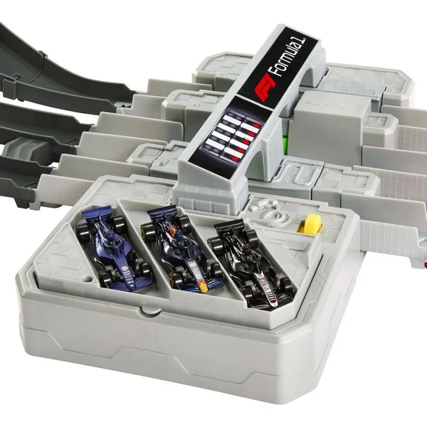 En mode course, le compteur de tours suit la vitesse à laquelle les modèles filent à travers l’accélérateur à trois voies et prennent des virages ainsi que des montées inspirées de véritables circuits urbains. Les enfants peuvent utiliser le système de dépassement interactif qui permet aux véhicules de changer de direction de manière inattendue dans les virages et de prendre la tête – le gagnant est celui qui franchit la ligne d’arrivée en premier. En mode infini, les trois modèles en métal F1 inclus se dépassent continuellement. La piste est compatible avec le système Speed Snap, ce qui permet de l’étendre facilement avec d’autres pièces.