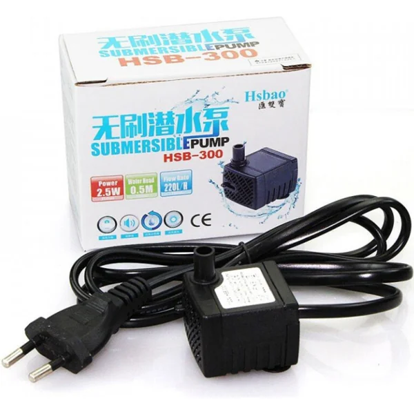 Pompe submersible universelle de la marque Hsbao, adaptée à la quasi-totalité des utilisations, des différentes tailles de cours d’eau décoratifs et de cascades, à son utilisation dans les aquariums en combinaison avec un filtre à flux, jusqu’aux abreuvoirs pour oiseaux et aux abreuvoirs pour animaux. Comme toutes les pompes Hsbao, elle offre un très bon rapport qualité/prix.