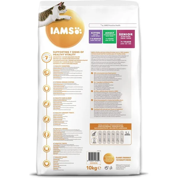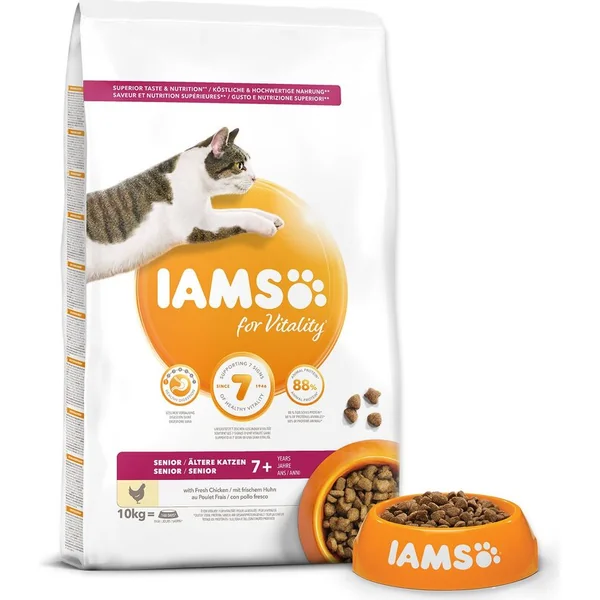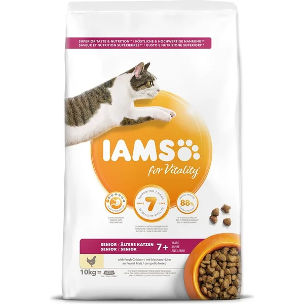 La nourriture IAMS for Vitality pour les chats seniors est une nourriture 100 % complète et équilibrée, élaborée par des experts, qui plaira à votre animal et lui fera du bien.