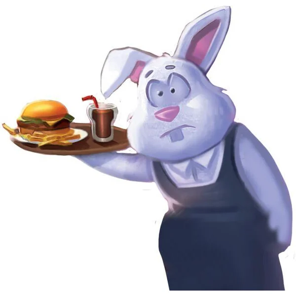 80 cartes Collation, 48 cartes Commande, 12 cartes Menu spécial, 4 dés et leur planche d’autocollants et 1 livret de règles.