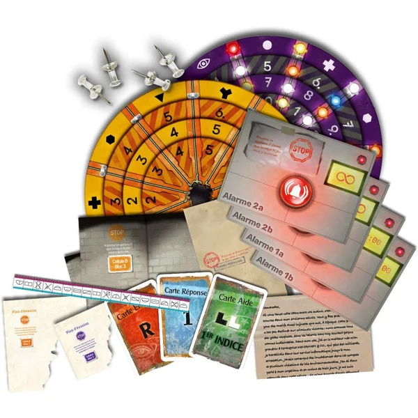 88 cartes, 2 disques décodeur, 2 paravents, 7 feuilles, 5 objets étranges et 1 livret de règles.