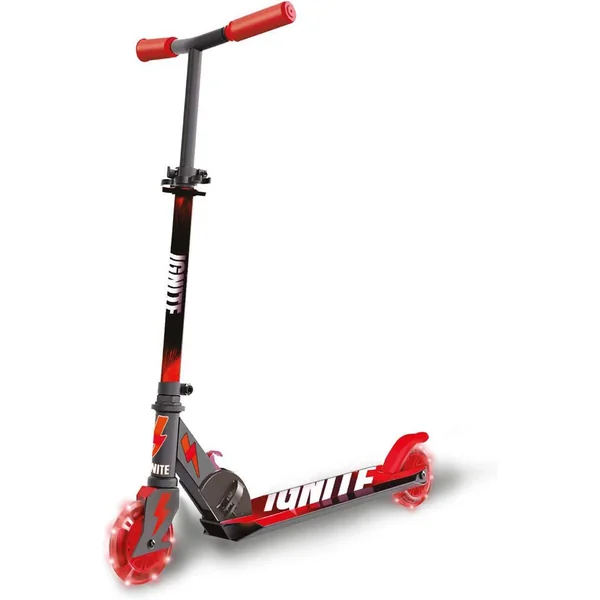 Trottinette lumineuse 2 roues Ignite Flow. Cadre léger et résistant, deck et poignées antidérapants, roues 120mm lumineuses (LED), roulements ABEC-5, guidon réglable (4 hauteurs) et pliable, frein arrière, 100 kg max.