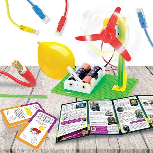 Un kit scientifique pour faire tes premiers pas dans le monde de l’électricité en toute sécurité ! Avec les fiches des expériences, tu pourras créer une reproduction d’une hélice et faire des expériences avec l’électricité statique. Et surtout, le manuel illustré bien détaillé te révélera les secrets et les principes de base de l’électricité !
