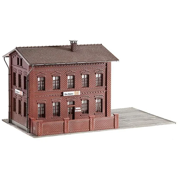 Immeuble administratif DBImmeuble administratif de la Deutsche Bahn haut de deux étages et construit en briques, mur extérieur, garage à vélos avec bicyclettes et plaque de sol avec surfaces de parking. Degré de difficulté