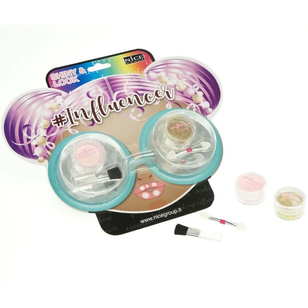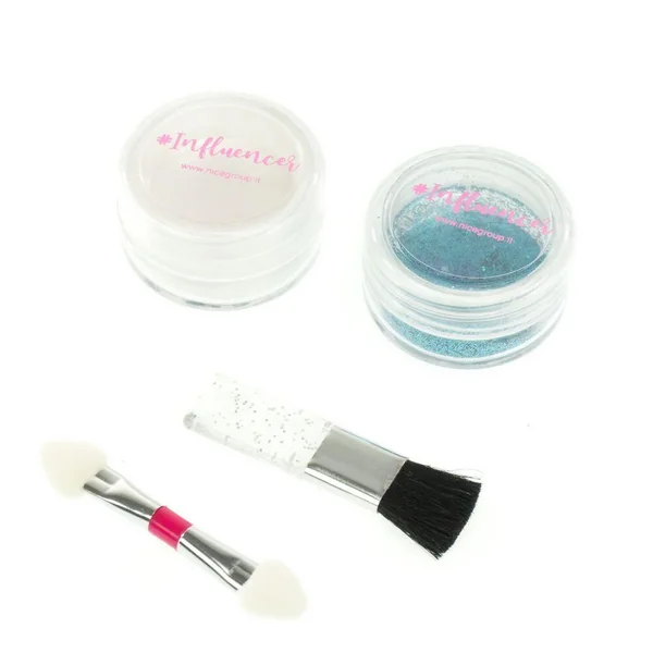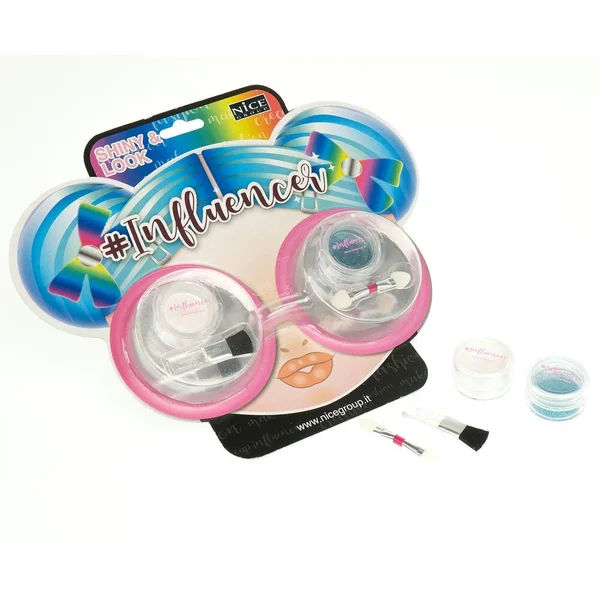 L’ensemble contient une crème pailletée avec applicateur et une poudre pailletée avec pinceau, à la fois pour le visage et le corps.