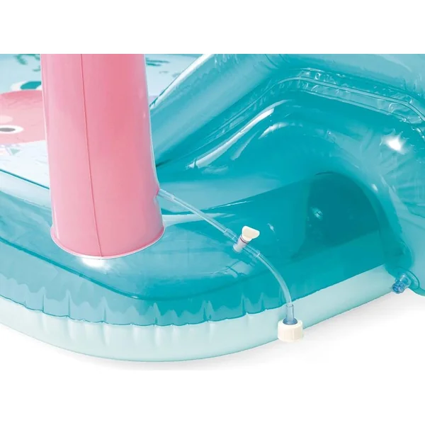 - Le terrain de jeu aquatique comprend deux anneaux gonflables.