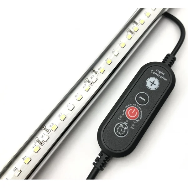 L’éclairage offre des chips WRGB de haute qualité, qui aident à mettre en valeur les couleurs vives des animaux et des plantes dans votre réservoir. L’éclairage peut être réglé sur des conditions individuelles à l’aide d’un variateur manuel, qui est intégré dans le câblage. L’éclairage propose 10 niveaux d’intensité.