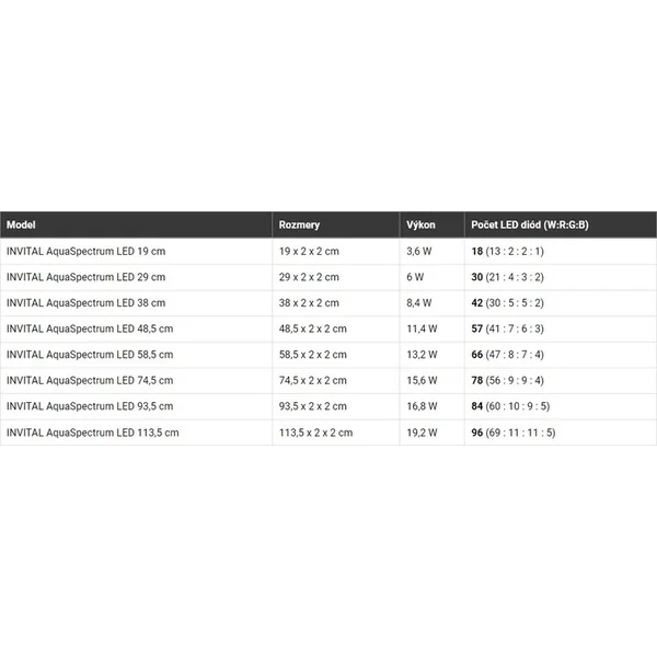L’éclairage tubulaire dans cette gamme de prix est idéal pour les aquariums qui ne mettent pas l’accent sur la culture de plantes exigeantes, et dont la principale préoccupation est la culture d’espèces peu exigeantes et l’élevage d’animaux. Ces lumières conviennent aux aquariophiles et terrariophiles peu exigeants et comme complément dans des réservoirs déjà aménagés, où nous avons besoin d’augmenter la puissance lumineuse totale ou d’élargir le spectre lumineux – l’élément WRGB met parfaitement en valeur les couleurs individuelles et le réservoir a l’air beaucoup plus vivant.